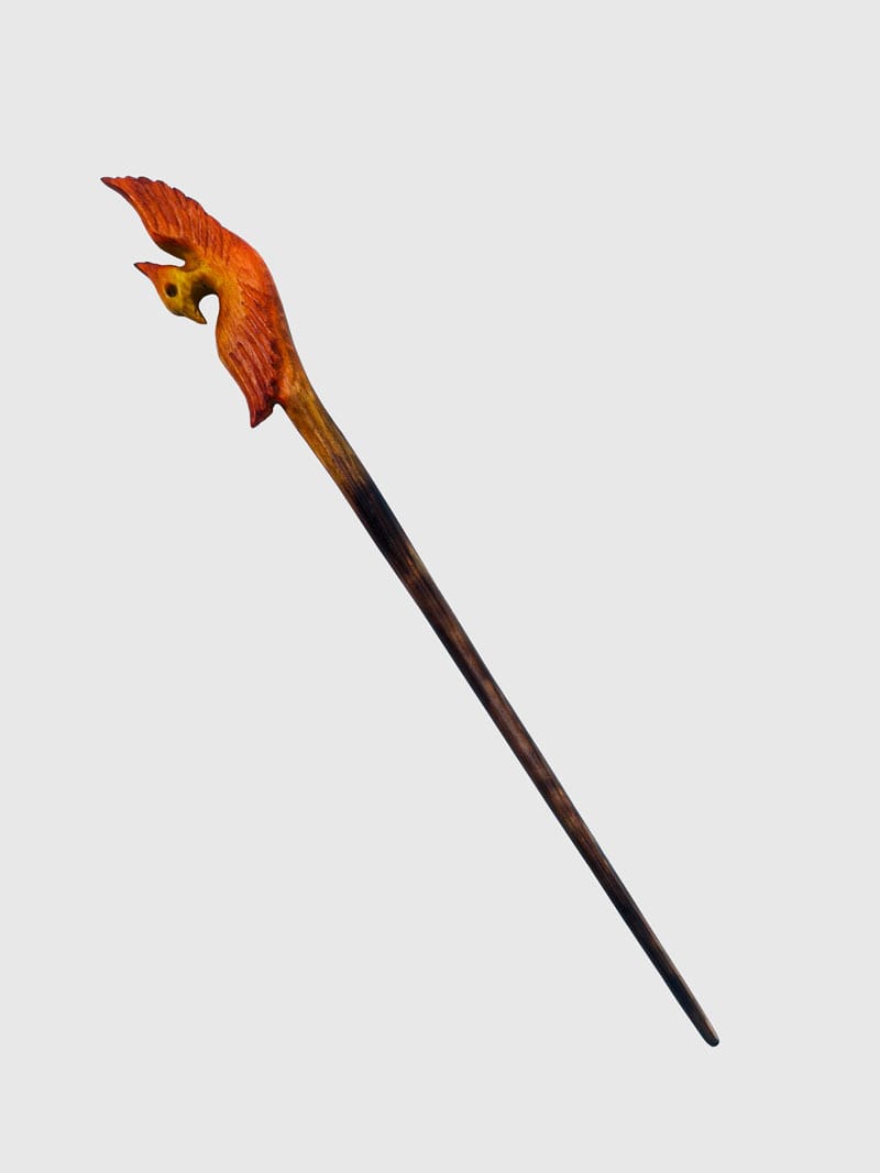 Ispirato dalla mitologica araba fenice, creatura capace di controllare il fuoco e risorgere dalle proprie ceneri, questa bacchetta simboleggia forza, rinascita e la potenza del ciclo della vita.